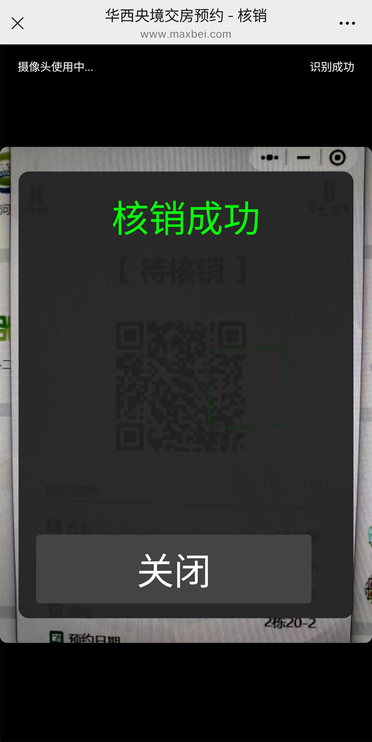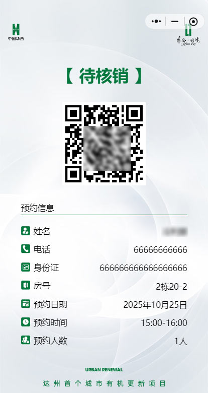 用户预约二维码,等待核销